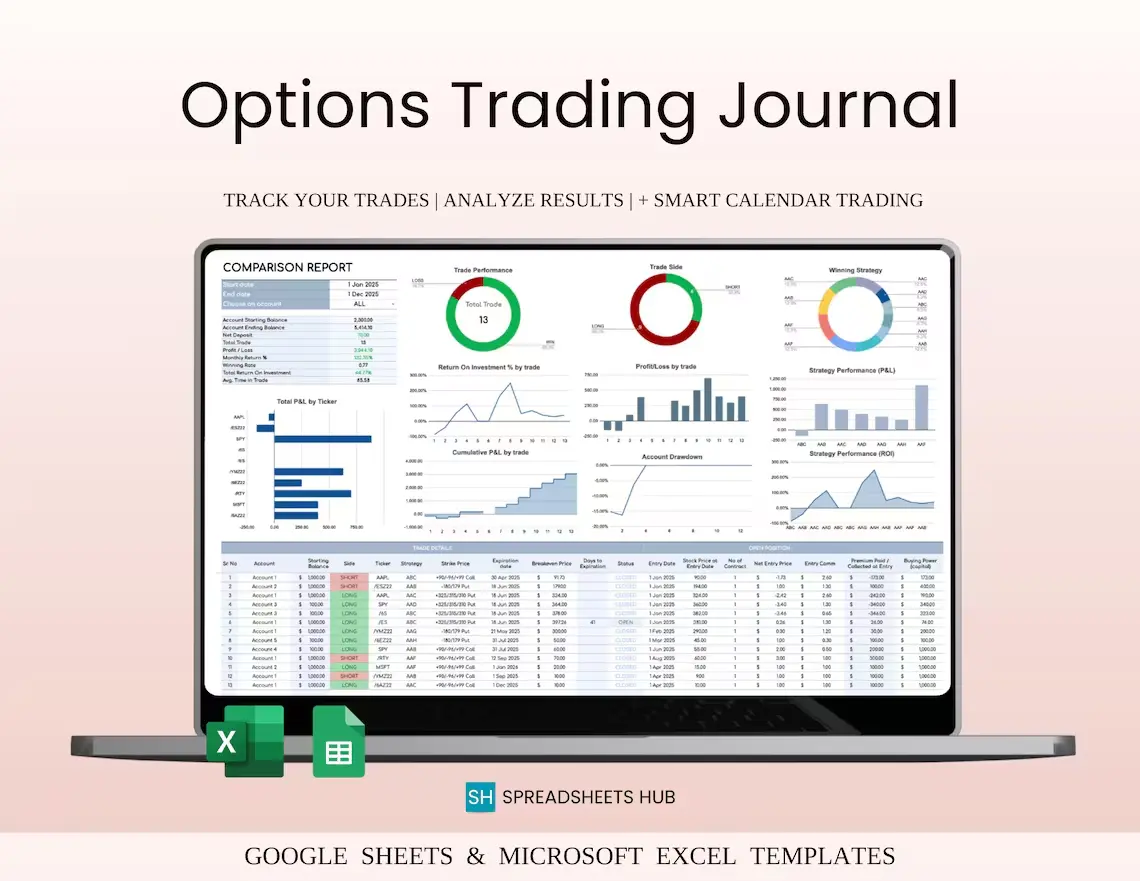 Track your options trades, understand what works, and improve your results — all in one simple system (Google Sheets + Excel compatible).